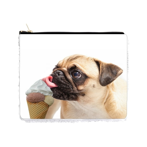 Pug Puppy Dog Licking Ice Cream 6 5 X 8 White Silver Two Sided Two Tone Sequin Pencil Bag Walmart Com